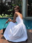 Patchwork Pockets Cotton Cami Midi Dress