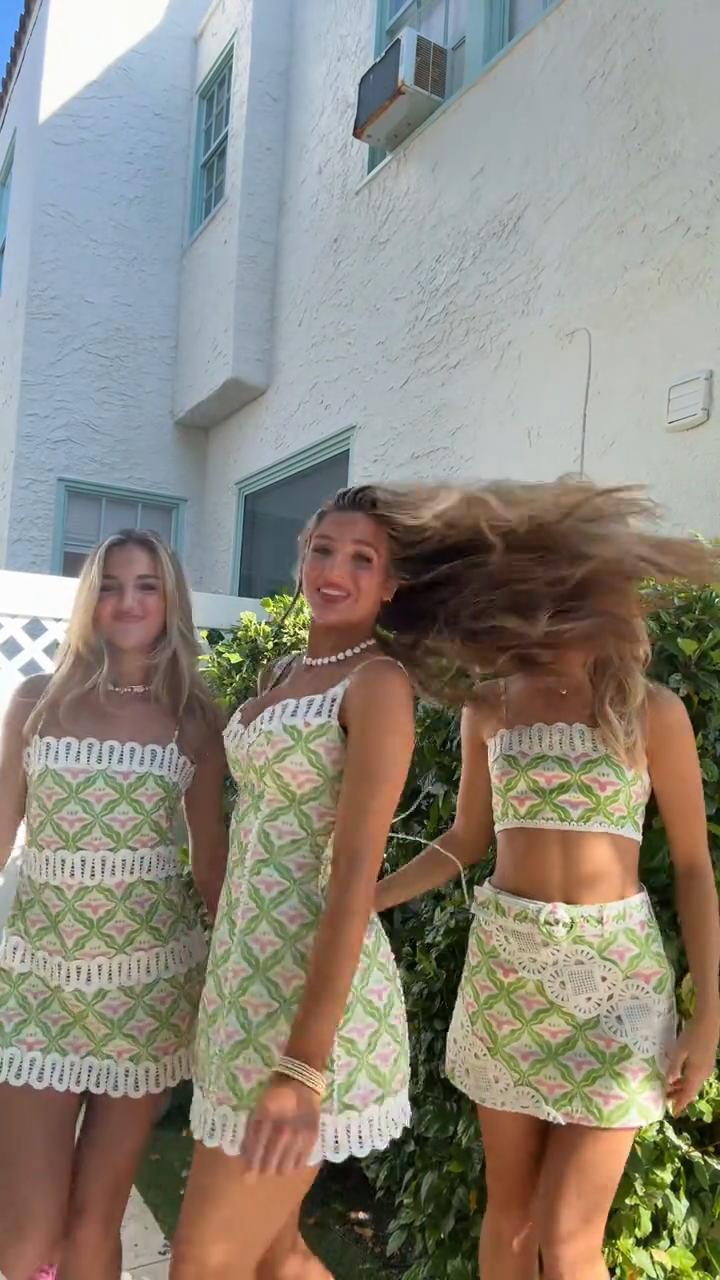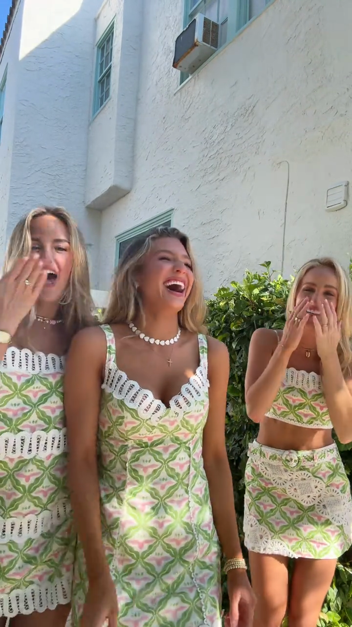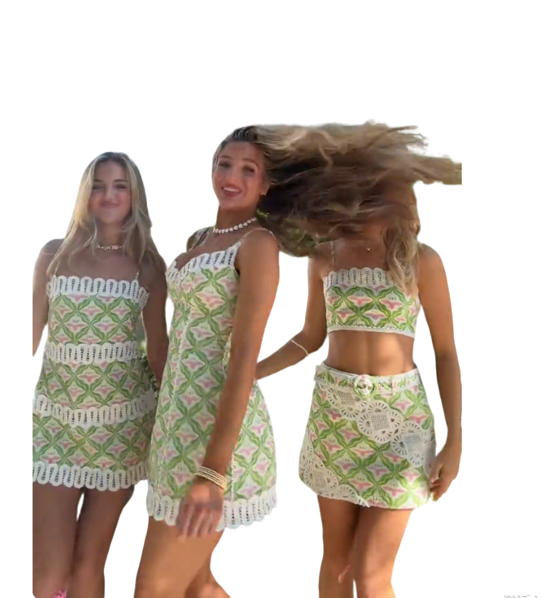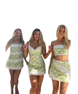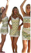 Pattern Crochet Trim Dress/Two-Piece Set