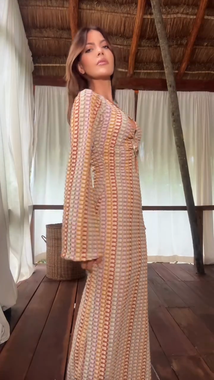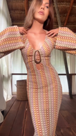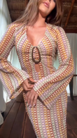 Patterned Long Sleeve Maxi Dress