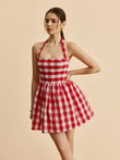 Plaid Halter Flare Dress