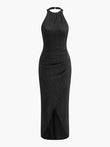 Pleated Halter Neck Dress