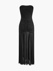 Pleated Mesh Tube Dress With Shawl