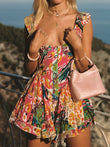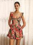 Print Low Cut Ruffle Short Jumpsuit