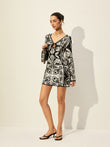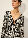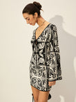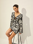 Printed Tie-Front Bell Sleeve Dress