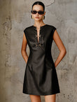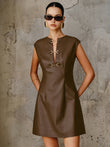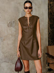 PU Leather Metal Buckle Sleeveless Mini Dress