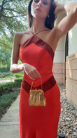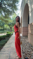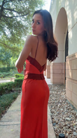 Red and Brown Contrast Maxi Dress