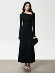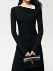 Ribbed Knit Asymmetric Long Sleeve Bodycon Long Dress