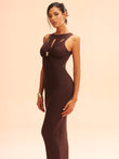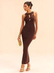 Ribbed Knit Cut-Out Bodycon Midi Dress