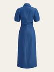 Ruched Polo-Collar Button-Front Midi Dress