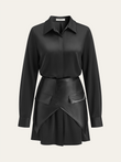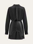 Satin Shirt Dress with Faux Leather Overlay