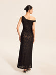Semi-Sheer Lace One-Shoulder Maxi Dress