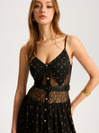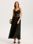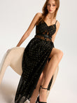 Semi-Sheer Lace Panel Slit Maxi Dress with Belt