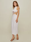 Semi-Sheer Mock Neck Cutout Backless Dress