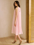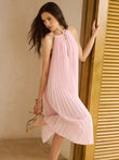 Semi-Sheer Pleated Cut-Out Midi Dress