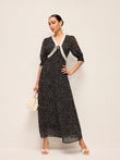 Semi-Sheer Polka Dot Chiffon Dress With Lace Trim