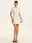 Short-Sleeved Waist-Cinching Mini Dress with Decor Pockets