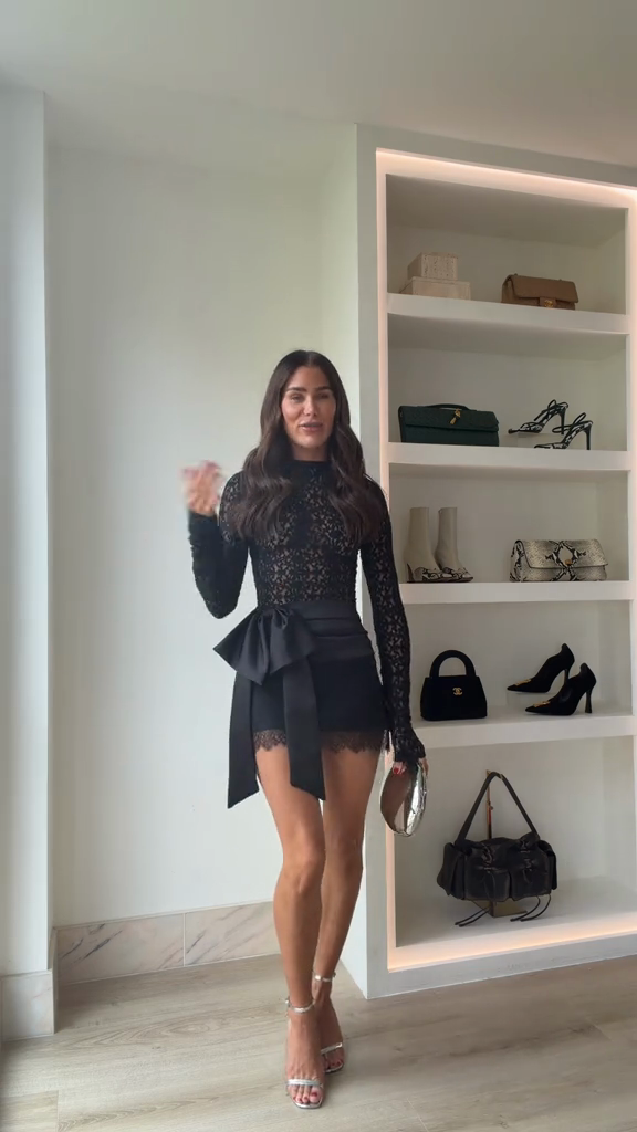 Silk Lace Bow Mini Dress