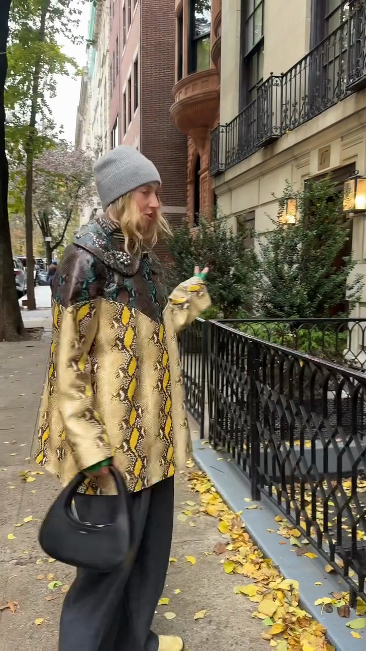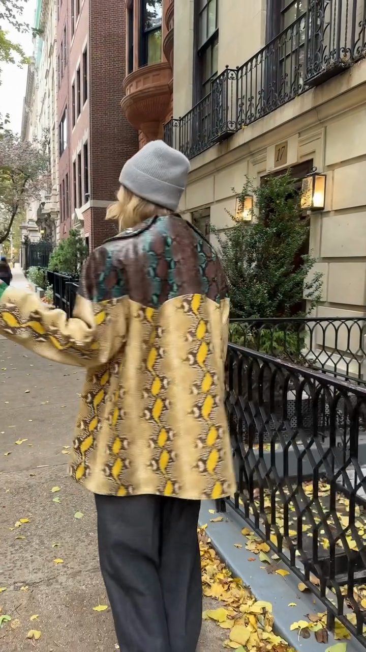 Snake-embossed patent leather jacket