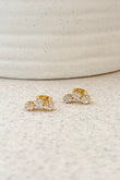 The Sophie Earrings are a stunning addition to any jewelry collection, featuring a trio of shimmering gemstones that create a sophisticated and eye-catching design. These elegant studs are perfect for making a statement on their own or adding a touch of glamour to your stacked piercings.