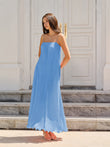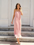 Spaghetti-Strapped Vertical-Pleated Maxi Dress