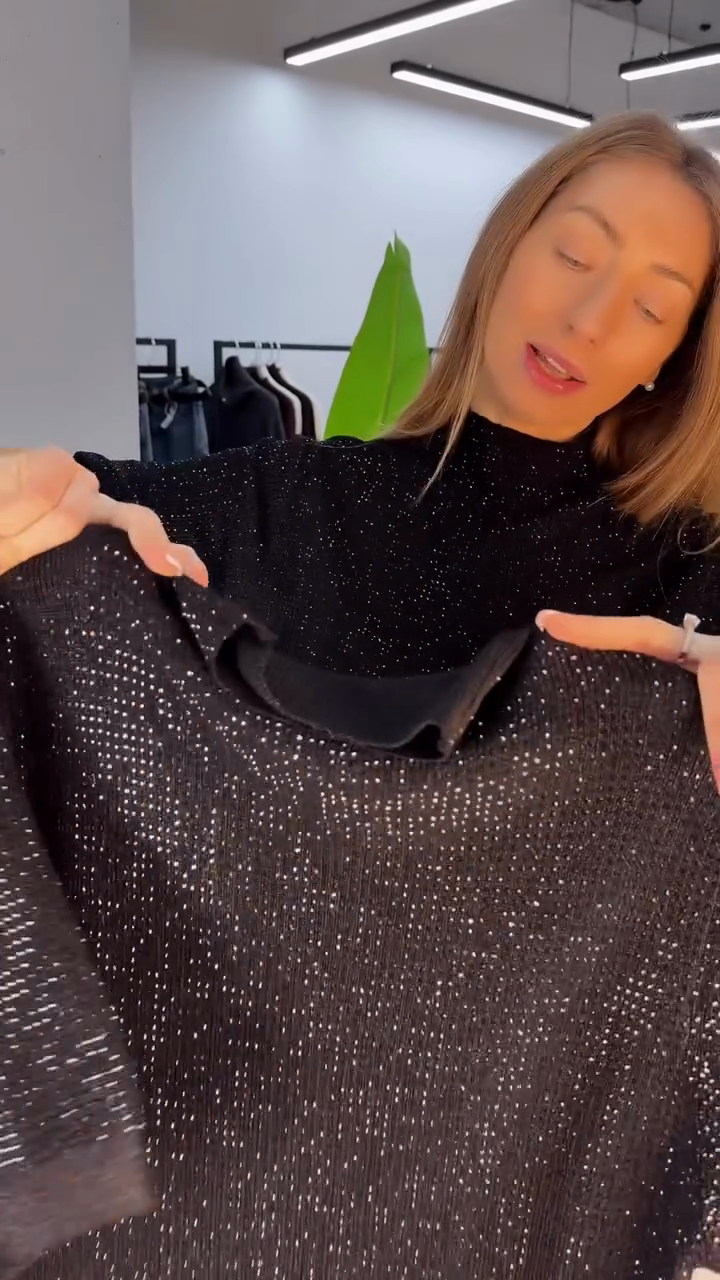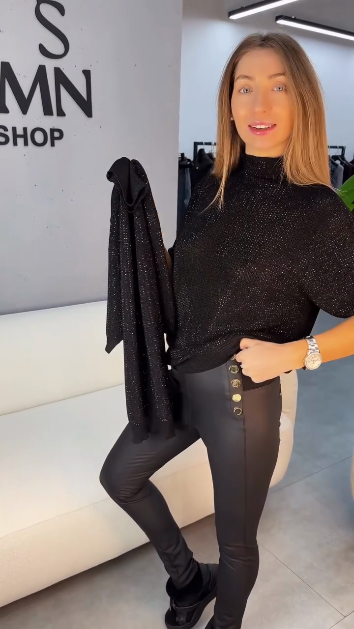 Sparkle Turtleneck Half-Sleeve Top