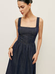 Square Neck Button-Front Denim Dress