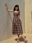 Square Neck Sleeveless Pleated Plaid Dress