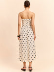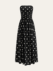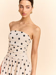 Strapless Polka Dot Ruched Midi Dress