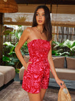 Strapless Print Jumpsuit With Waist Tie
