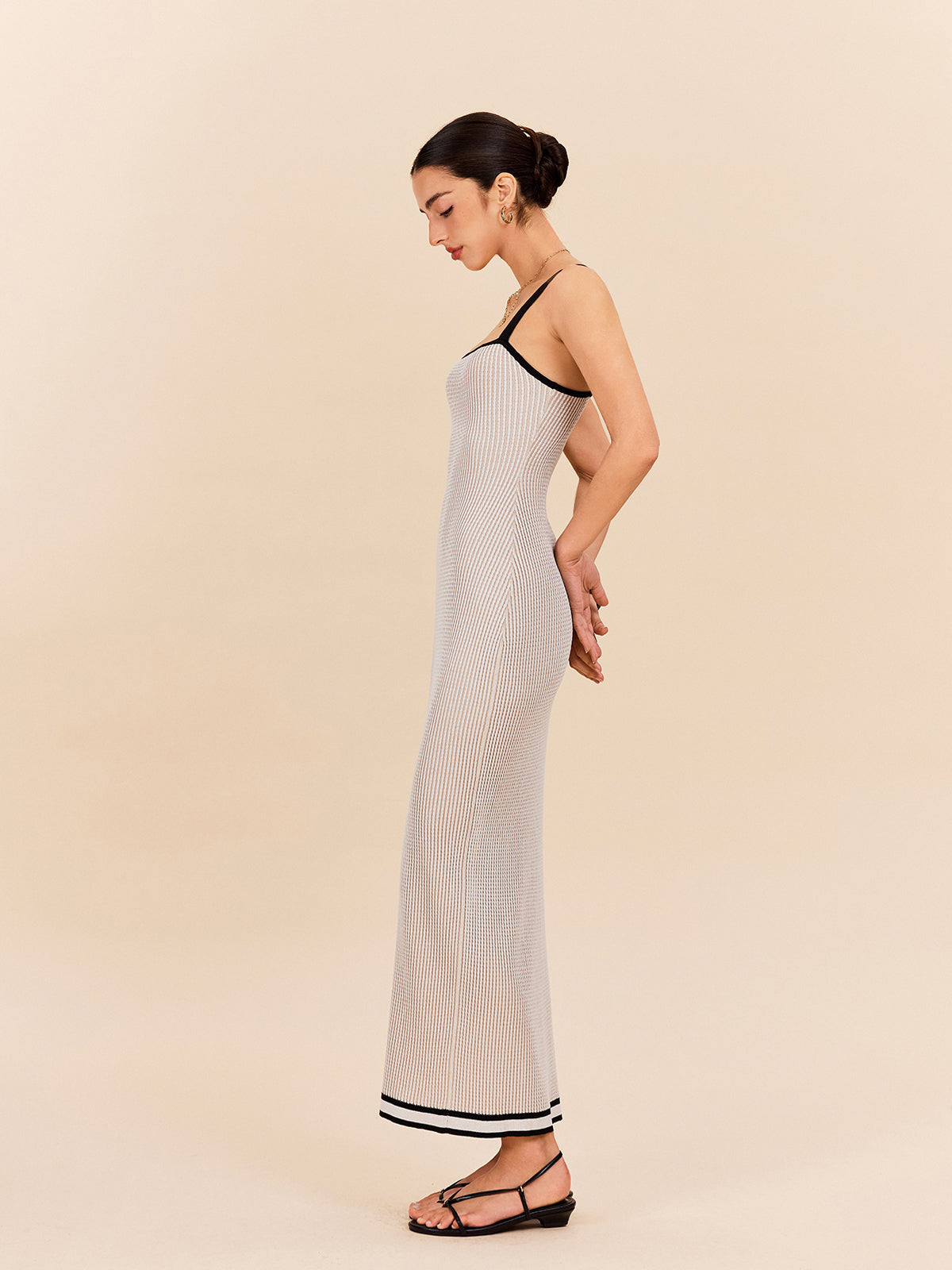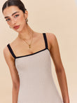 Striped Contrast Trim Spaghetti Strap Sweater Dress
