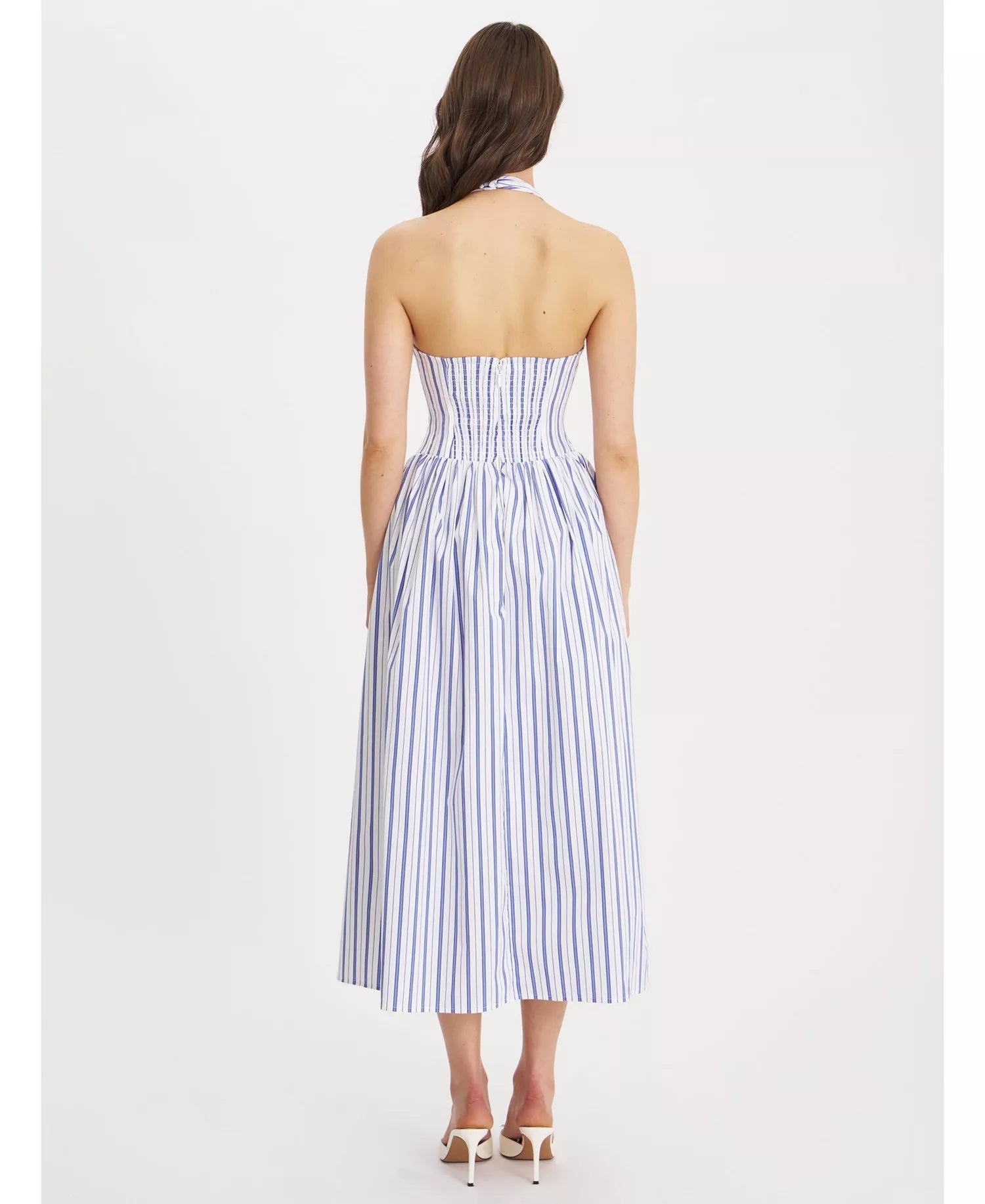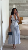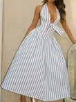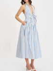 Striped Halter Neck Midi Dress