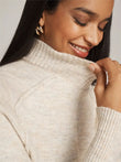 Has sweater weather ever looked (and felt) this good? This sweater features a turtleneck and longline silhouette with a split-front hem.
