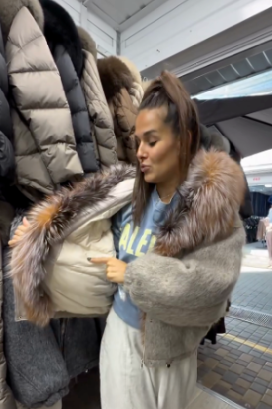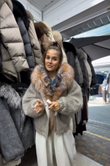 Design: Two-tone base, oversized fur collar, relaxed fit