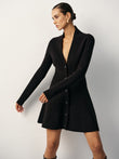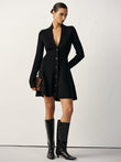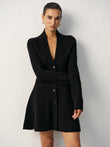 V-Neck Buttoned Wool Blend Sweater Dress