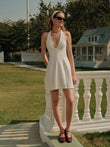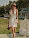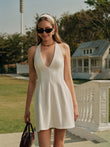V-Neck Halter Knotted Pleated Dress