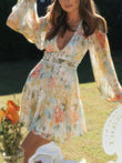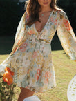 V-Neck Puff Sleeve Lace Mini Dress