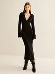V-Neck Slim Lapel Sweater Dress
