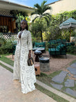 The fabric is light and flowy, making it comfortable even in warm weather. The dress's silhouette allows for easy movement, with a fitted bodice and loose skirt that flatters the figure, making it ideal for all body types.