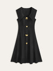 Wide Collar Button-Down Pleated Dress