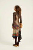 Eclectic charm meets modern artistry. This striking sleeveless dress features a vibrant patchwork of floral and paisley prints, designed to make a sophisticated statement through dynamic movement and bold texture.