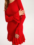 Wool Blend Knit Ruffled Flared Sleeve Mini Dress